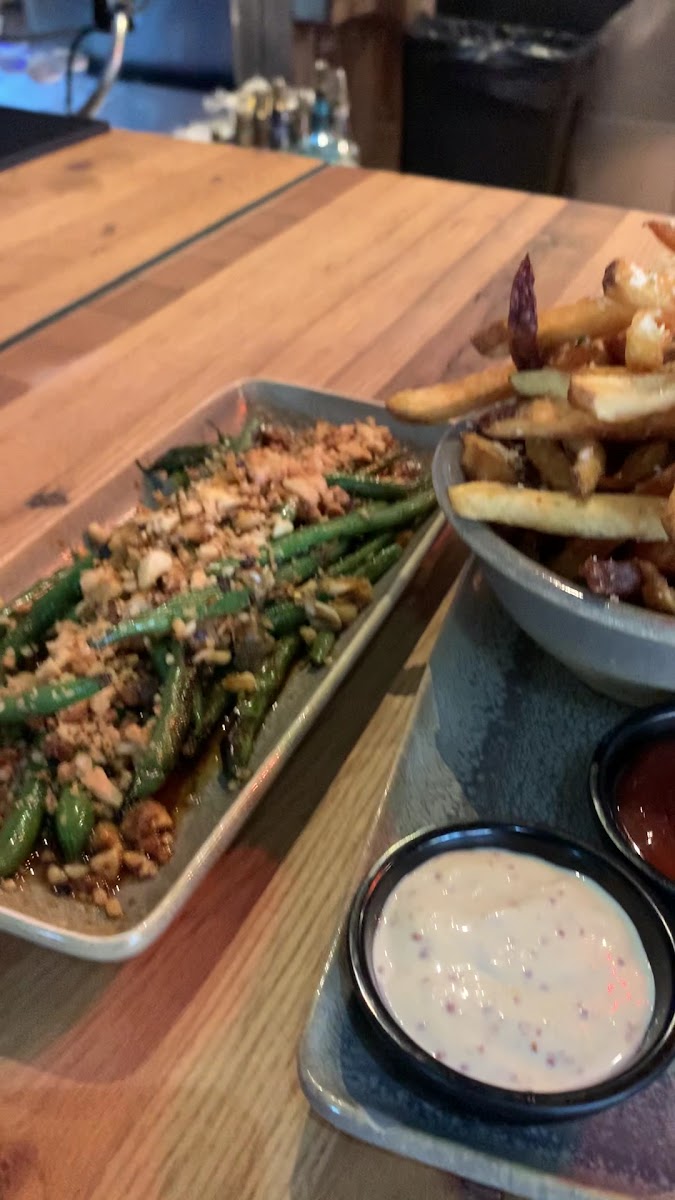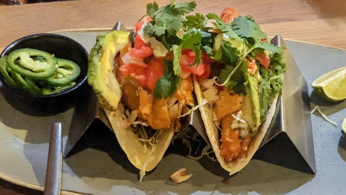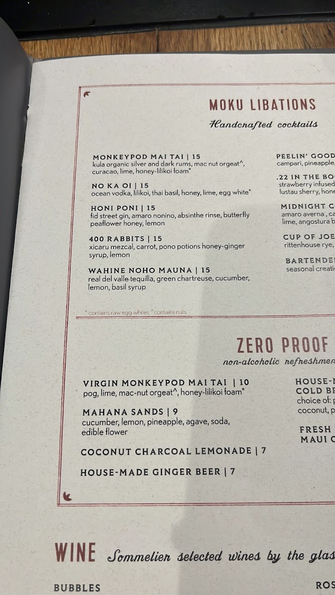 The ambiance at Moku Kitchen strikes a perfect balance between relaxed and refined. As you step inside, you're enveloped by soft lighting and warm wood tones, offering a cozy and inviting atmosphere. The lively buzz of happy diners gracing both the indoor and outdoor spaces enhances the experience, making each meal feel like a mini-vacation without going full tiki.